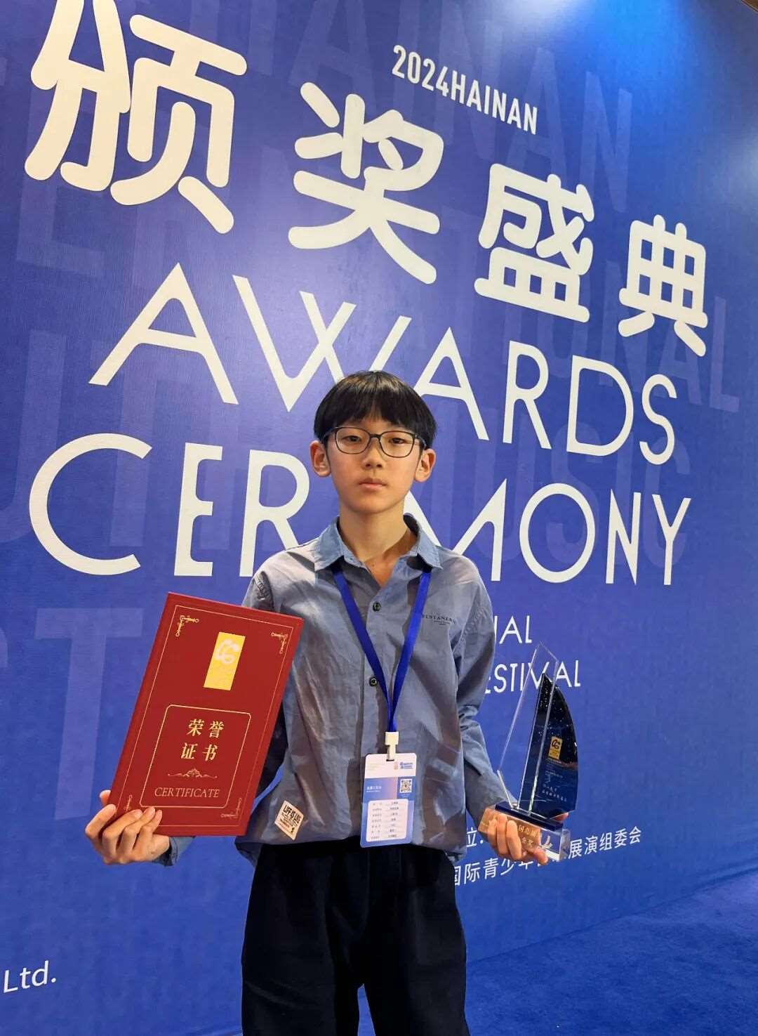 在刚刚落幕的2024年海南IMAARTS国际青少年乐器展演暨全国总决赛中,王柄翰凭借一把吉他,一曲动人心弦的旋律,一举拿下民谣吉他组金奖!