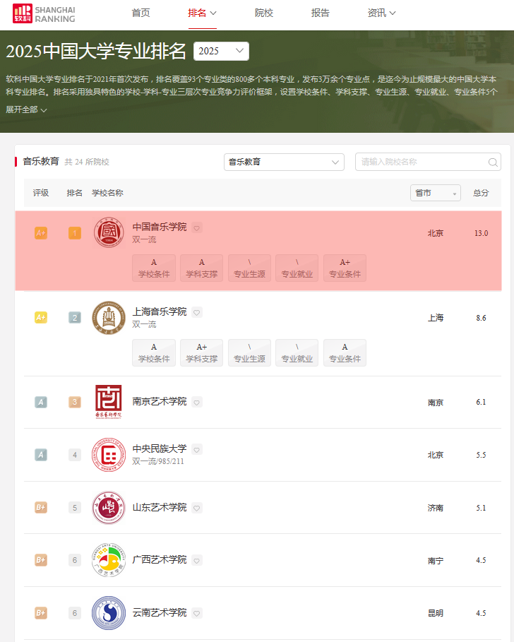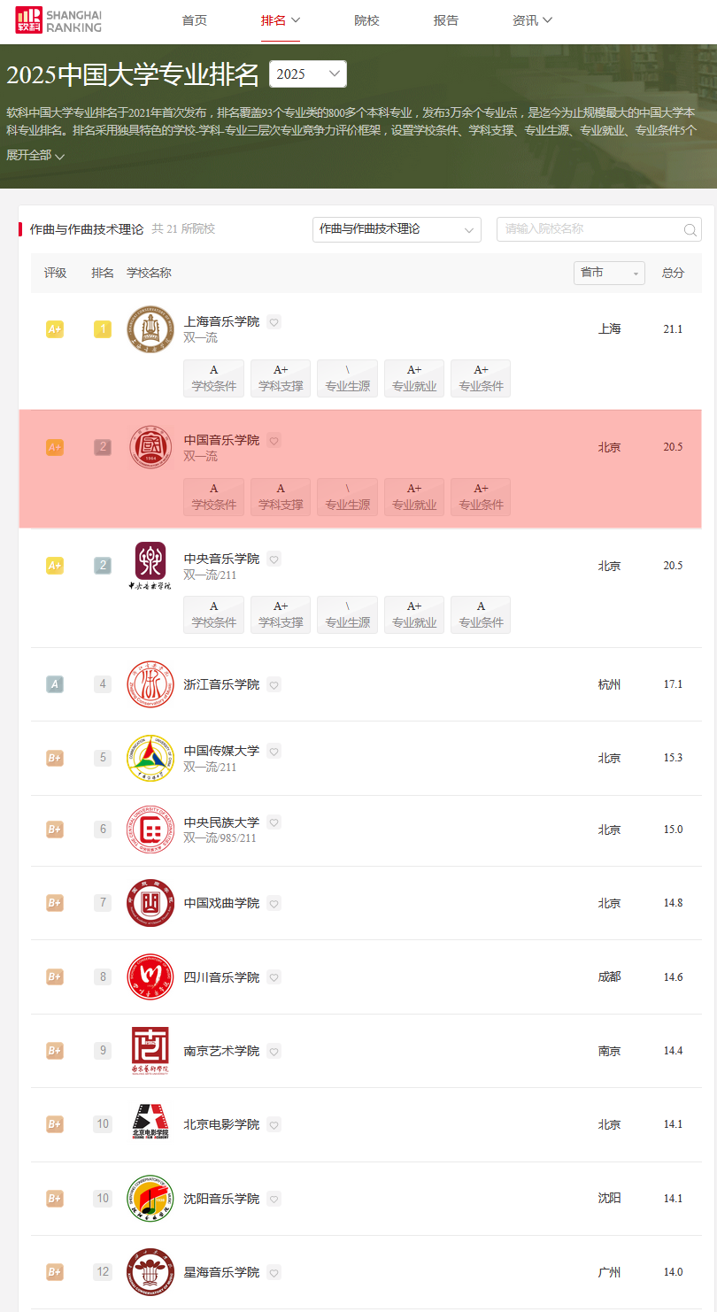 在音乐生心中,国音就是那颗*亮的星,手握国内顶配资源!1964年建校,“双”加身,北京市与文旅部共建,“全球音乐教育联盟”秘书处也落子于此。校园不大,本科仅设5个专业,却个个能打:2025软科*佳专业榜,音乐教育全国No.1,音乐表演、作曲技术理论并列第二,音乐学第三——五个专业四个闯进前三,硬核到发光!
